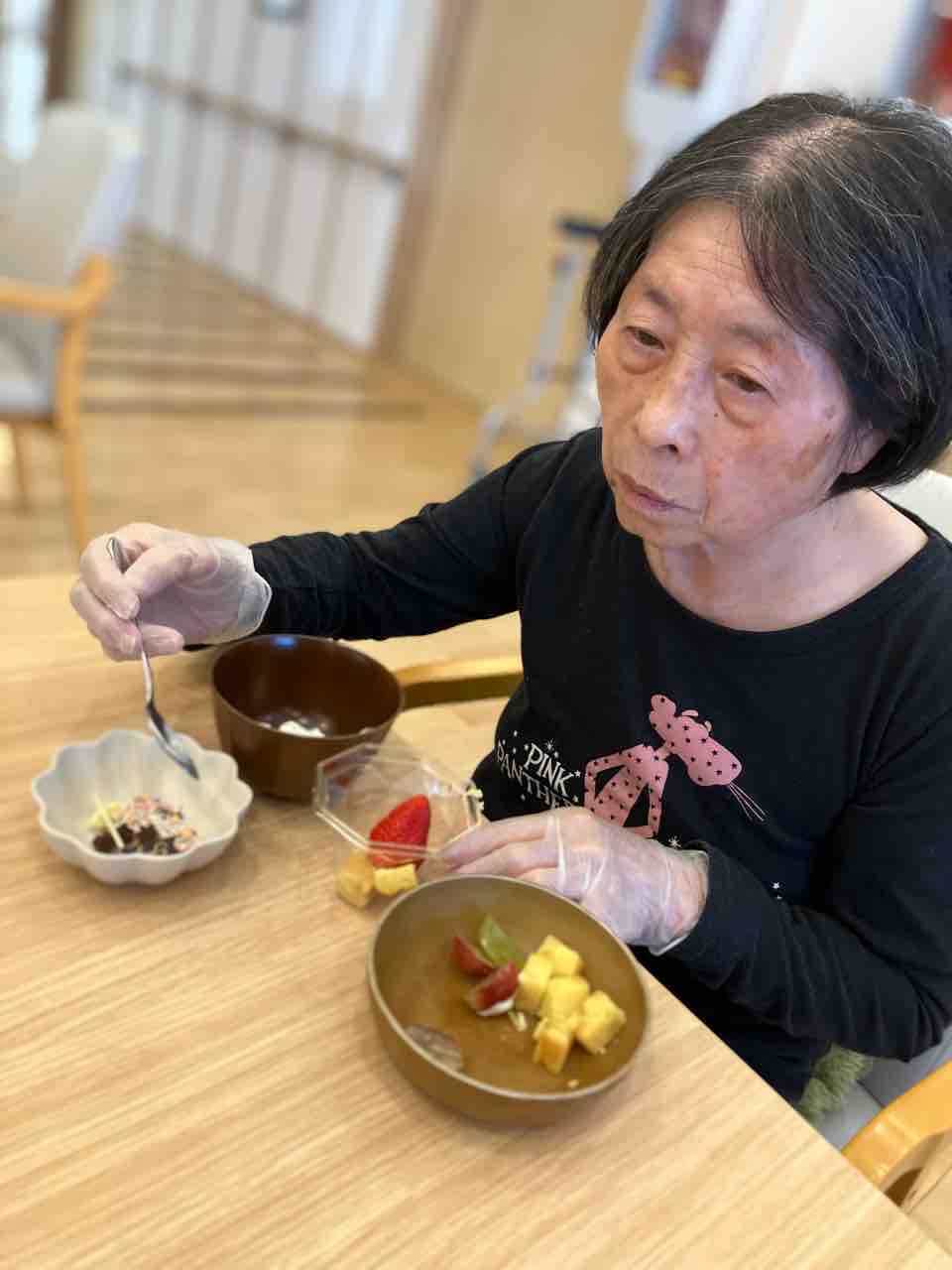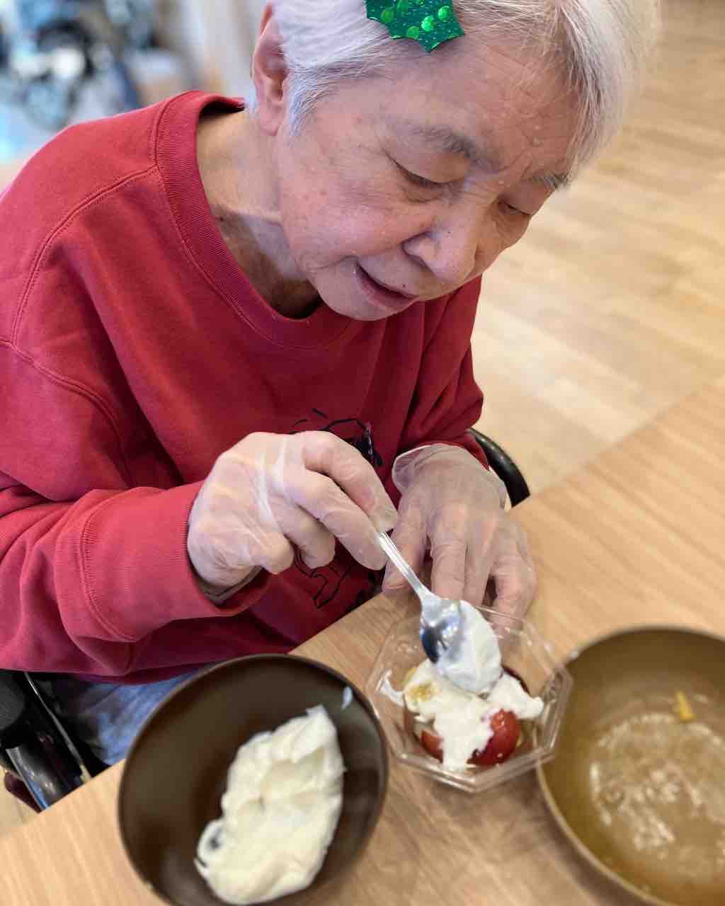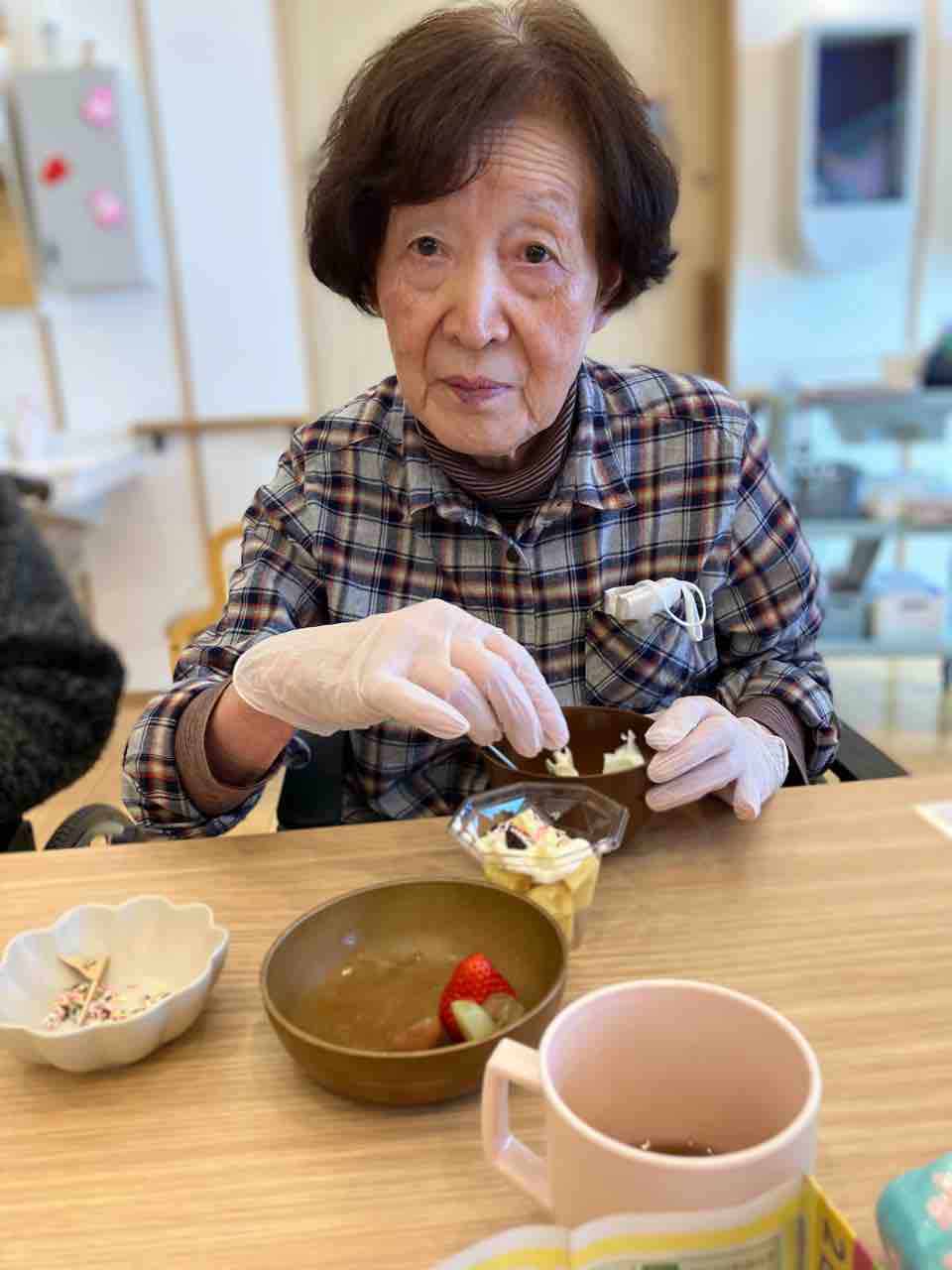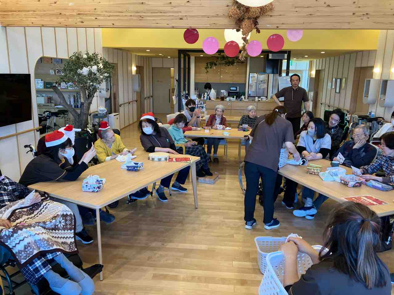 クリスマス会🎄 2023年12月31日 12/24日はクリスマス会を開催致しました🎅まずはケーキを作ります🧁カップにケーキやお菓子、フルーツを盛り付けていき途中でちょこちょこ味見をされる利用者様も😋無事完成し15時に食べるまで冷蔵庫で冷やします🤶お昼を食べて次は皆様でクリスマスソングを合唱しました♪スタッフによる素敵な演奏に合わしてクリスマスにちなんだ名曲を皆様と歌いました✨そして日々ウクレレを練習されているO様の演奏発表会も行いました🎸🙏素敵な演奏に合わして利用者様も一緒に歌われて、とても素敵な空間になりました✨そしてビンゴ大会が始まりました🎱中々皆様揃わなかったですが、ビンゴになった順でささやかなプレゼントをお渡ししました✨プレゼントにとても喜んで下さりました😊最後は作ったケーキを食べました〜🧁😋 < 前の記事次の記事 > コメント コメントフォーム 名前 コメント 記事の評価 リセット リセット 顔 星 情報を記憶 コメントを投稿する